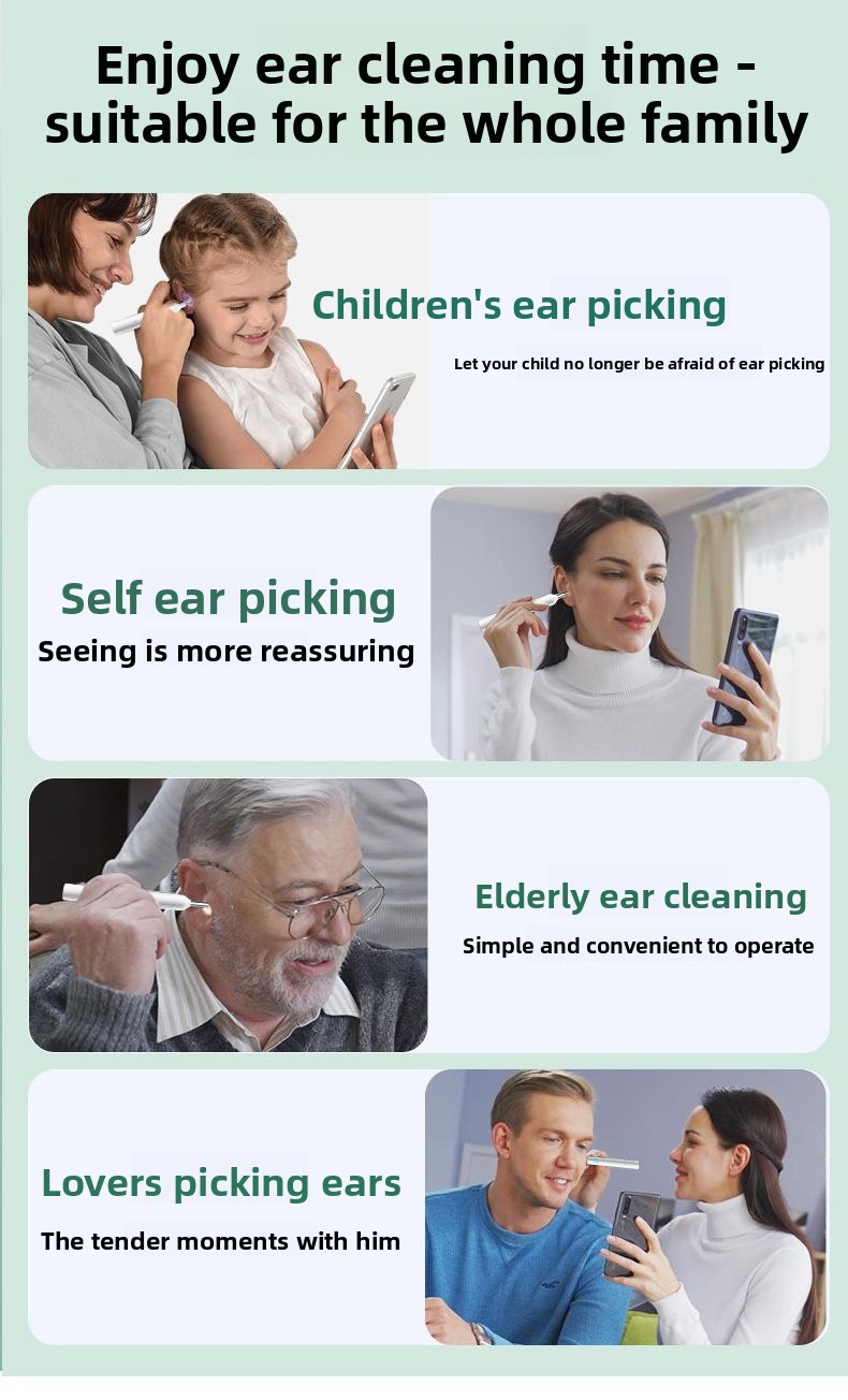 Visual Ear Scoop: High-definition endoscope allows clear viewing of ear canal for safe and precise cleaning.